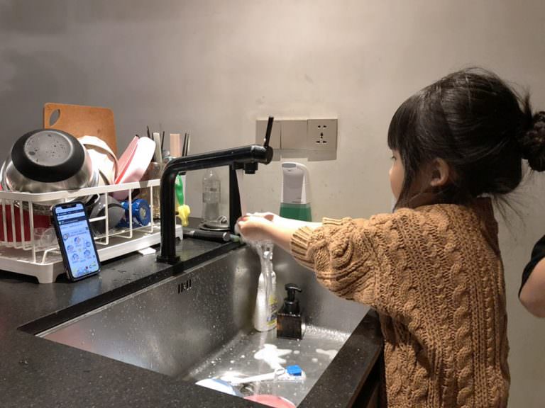 前幾次我都讓他們看著步驟跟著一起洗手