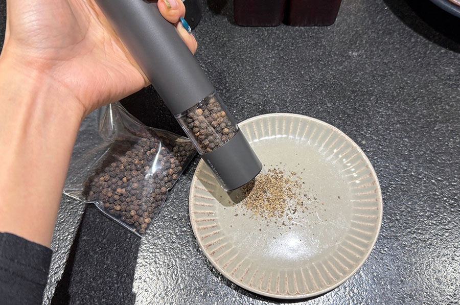 一鍵按壓就可以瞬間磨出香氣四溢的胡椒、岩鹽、花椒……讓你的料理更有層次感!